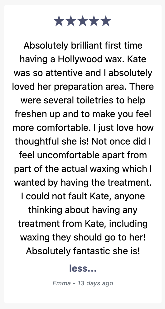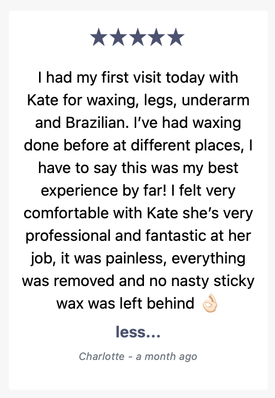 If you still need anymore persuading to ditch the razor, check out some of my 5* reviews from existing clients in the testimonials page of my online booking site.