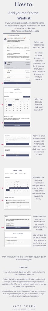 UncategorizedHow to: Book, Reschedule and add to the waitlist. February 16, 2026February 16, 2026 katedearnbeauty Share this: Share on X (Opens in new window) X Share on Facebook (Opens in new window) Facebook